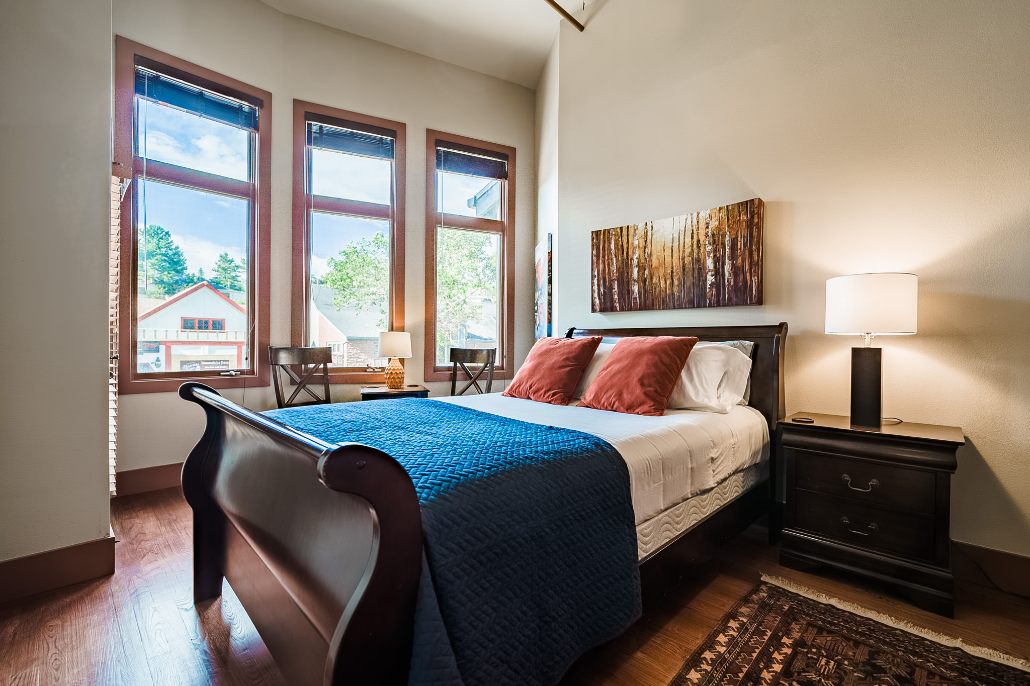 The owners of this gorgeous loft say they fell in love with its cozy, high-end vibe, cleanliness, high ceilings, and incredible location that’s perfect for exploring the best of Estes. It’s perfectly appointed with comfy furnishings, a fully stocked kitchen, and countless amenities so you can feel at home during your mountain getaway in Estes Park.