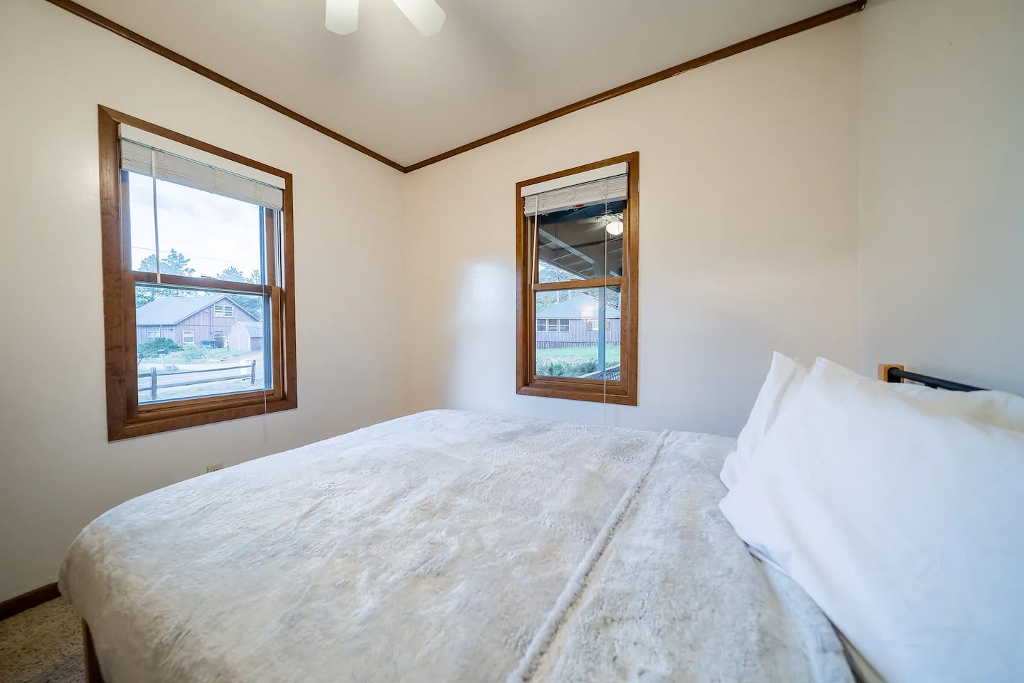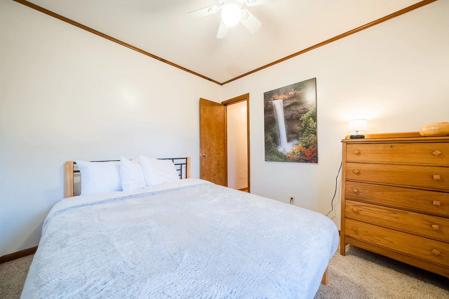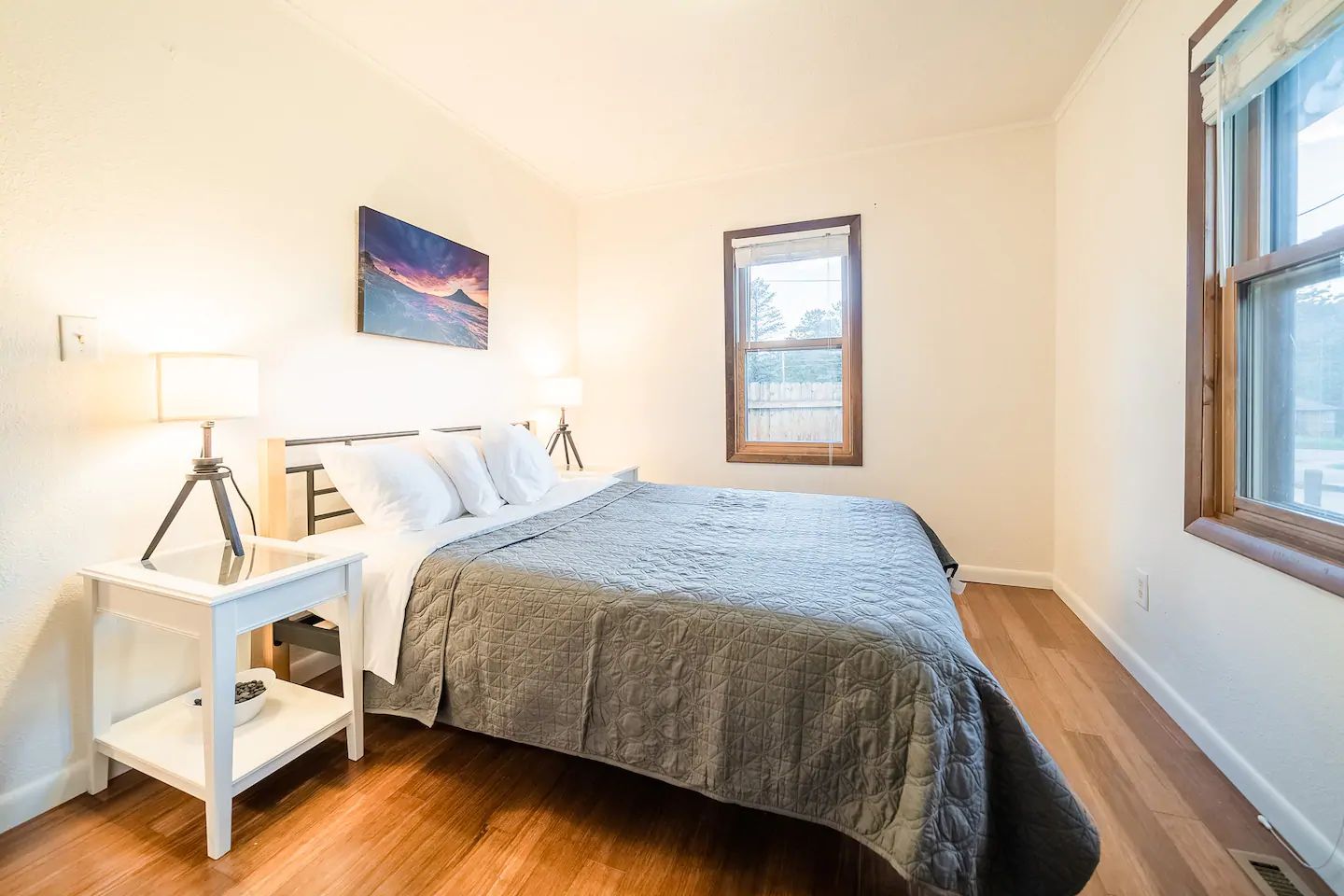 - A smaller bedroom but still equipped with the same comfy memory foam queen mattress that’s in the other bedrooms.