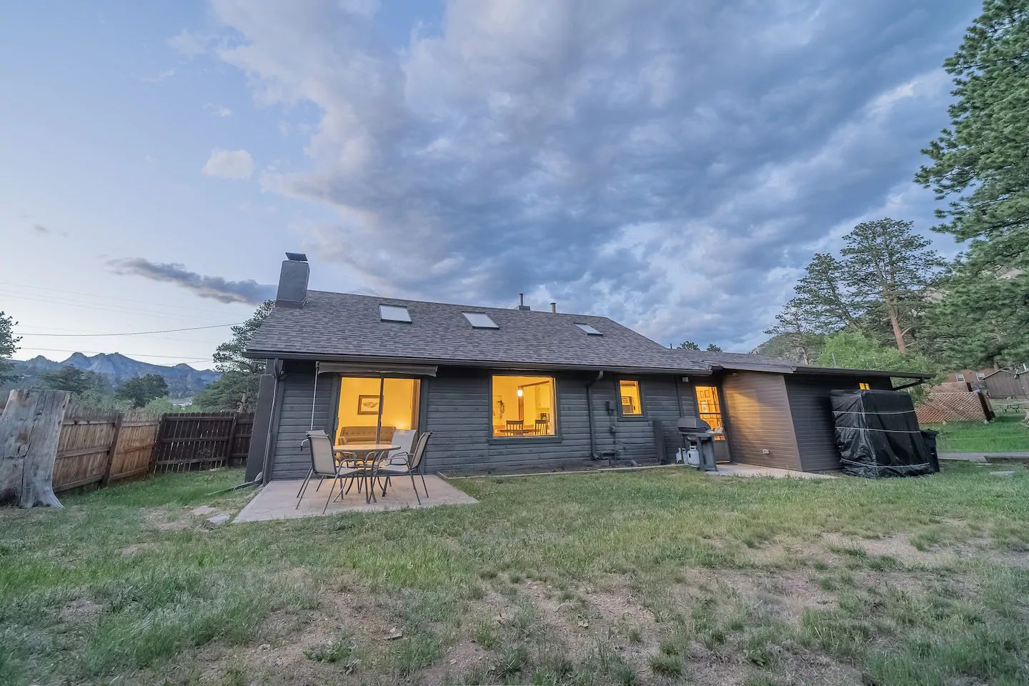 Enjoy this 3br home perfectly situated just minutes from the National Park and a few blocks from the best restaurant in Estes. A A 44″ 4K TV, full kitchen, open floor plan, yard, and master bedroom with an en suite bathroom will ensure a great getaway for your family.