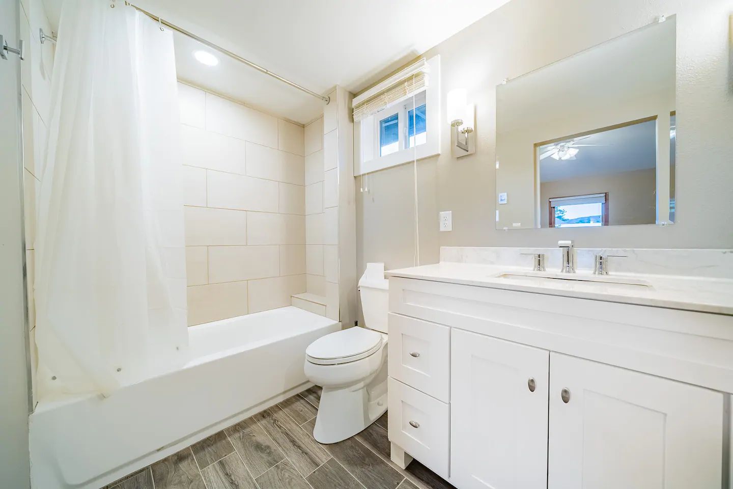Events, loud music and noises, and parties are strictly prohibited. Note that we have wonderful long term renters in a small cabin on the back of our lot — pleae treat our neighbors like you’d want to be treated. The house is equipped with NoiseAware which measures sound levels and alerts us if things are too loud. It does not record content, it only measures decibel levels so your privacy is 100% guaranteed. Guests are not to unplug it.