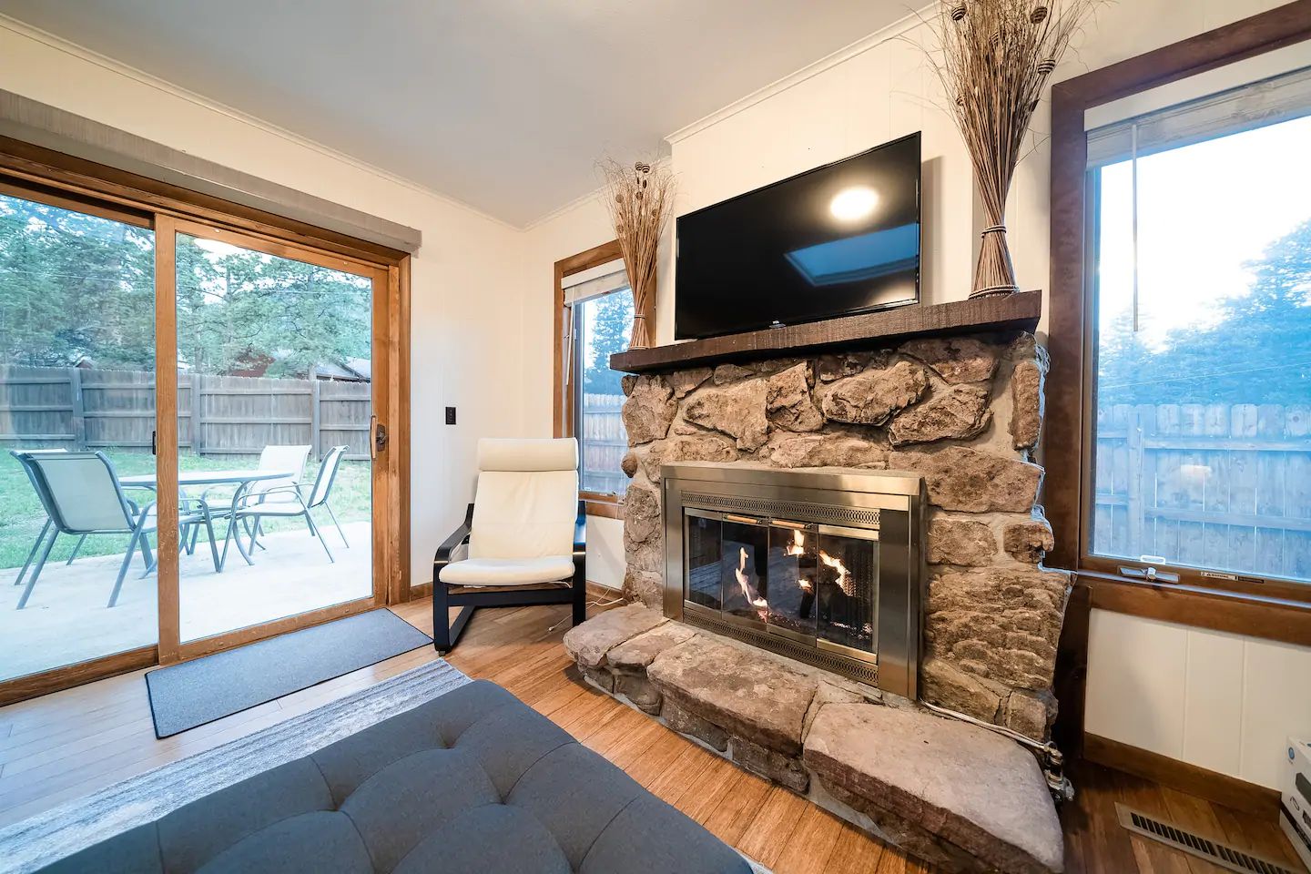 LIVING & ENTERTAINMENT: There’s a 44″ 4K smart television with Roku. Come on in and log into your favorite streaming service (Netflix, Amazon Prime, Sling, Hulu, et). There are also games, books, and a cozy fireplace. Our home employs a speedy WiFi network with no dead zones.