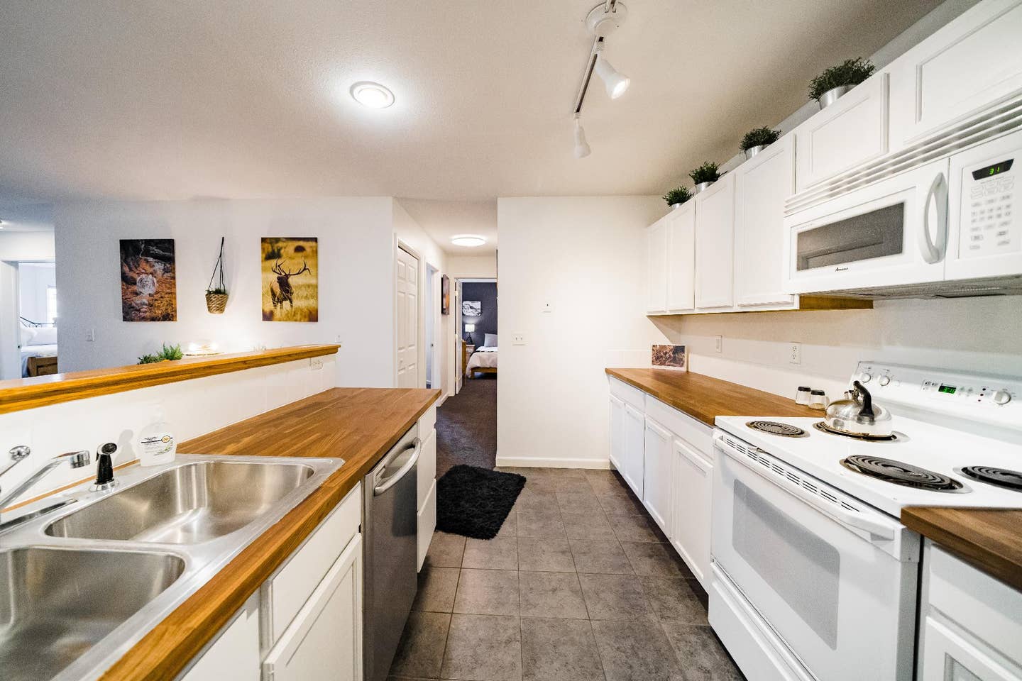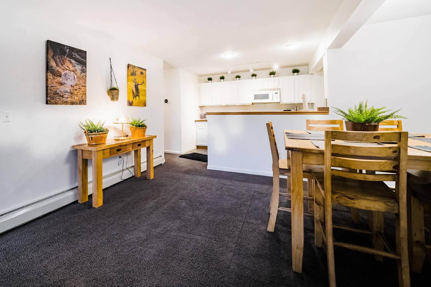 There’s a lot to love about this unit — recent updates include luxurious memory foam mattress toppers and a huge smart TV loaded with Netflix, Sling and Amazon Prime. The best part its utterly perfect location. If you stay here, you can leave your car behind and walk to pretty much everywhere in downtown Estes Park along the banks of the scenic Big Thompson River. This wonderful rental is not smack dab in the middle of downtown; instead, it’s a half block away from the edge, and three blocks away from the center. That means you get all the benefit of being downtown without the noise and congestion.