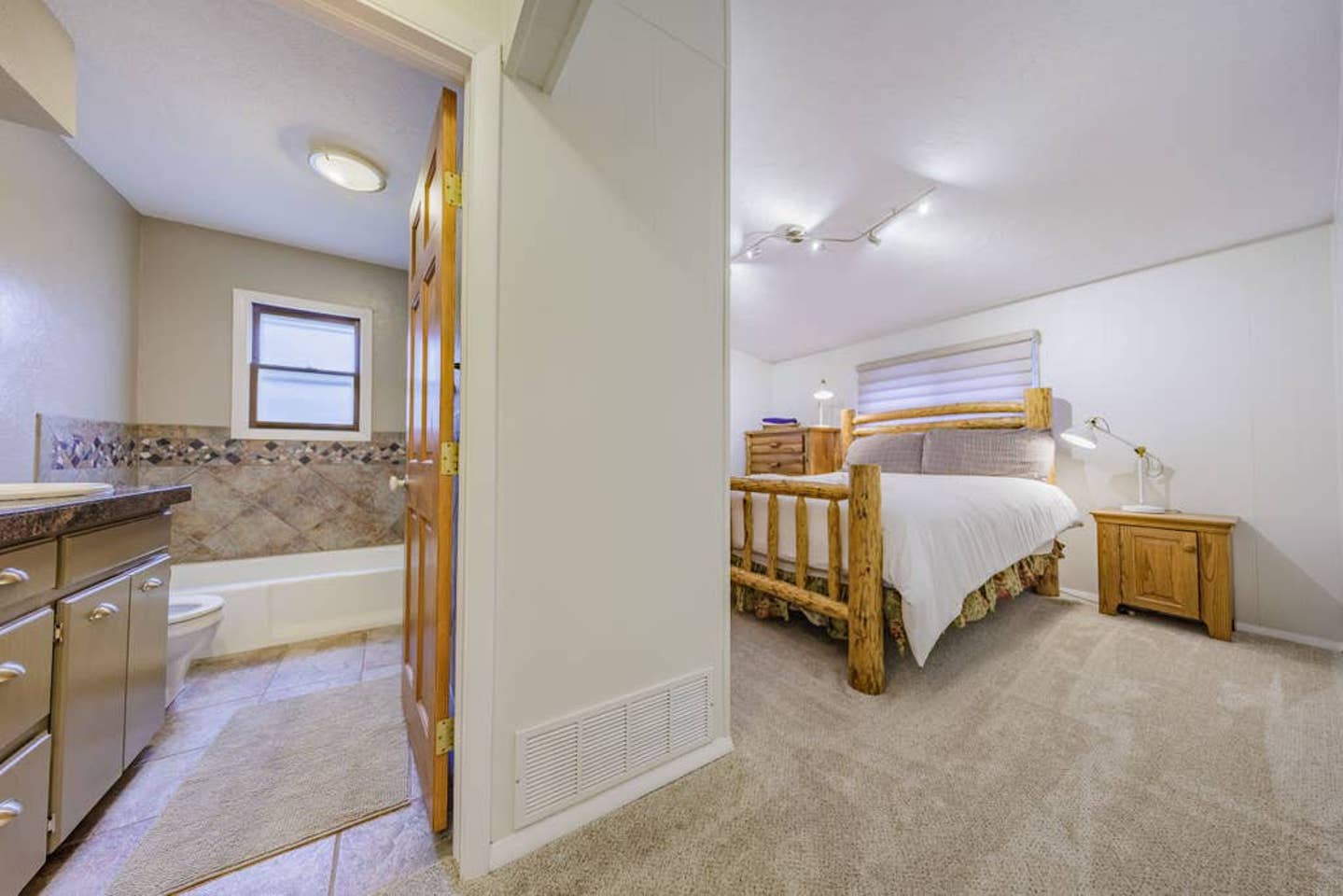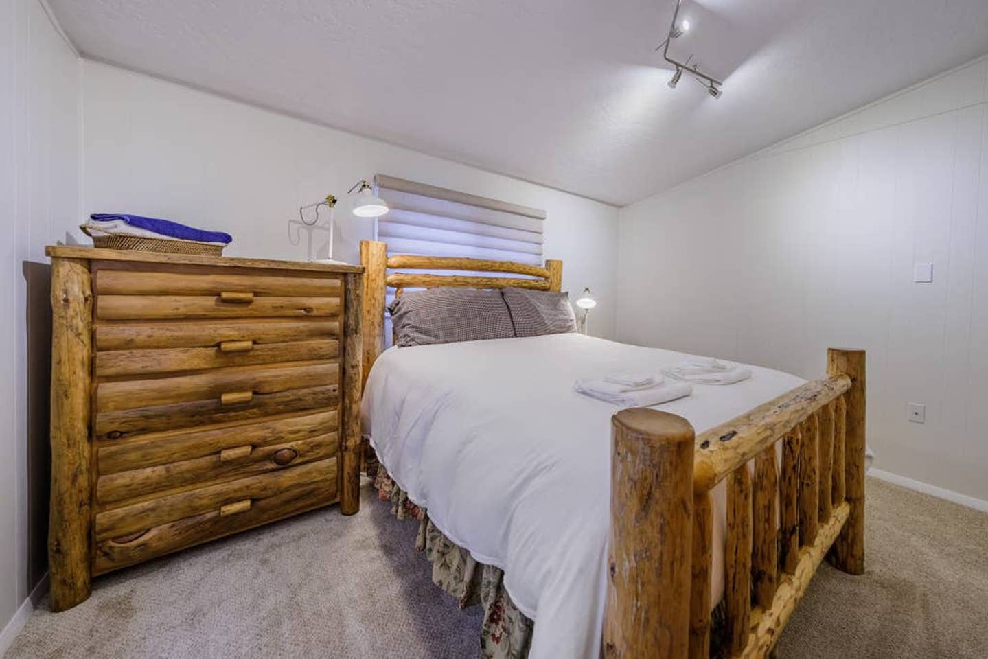 This home has 3 separate bedrooms with 4 beds in total. The master suite features a gorgeous, hand-made log bed with an Olympic queen mattress and private bathroom. A second queen bedroom with a slider door opening out toward the river. The thirdbedroom has two single beds. Note that the master bath has a tub but no shower.