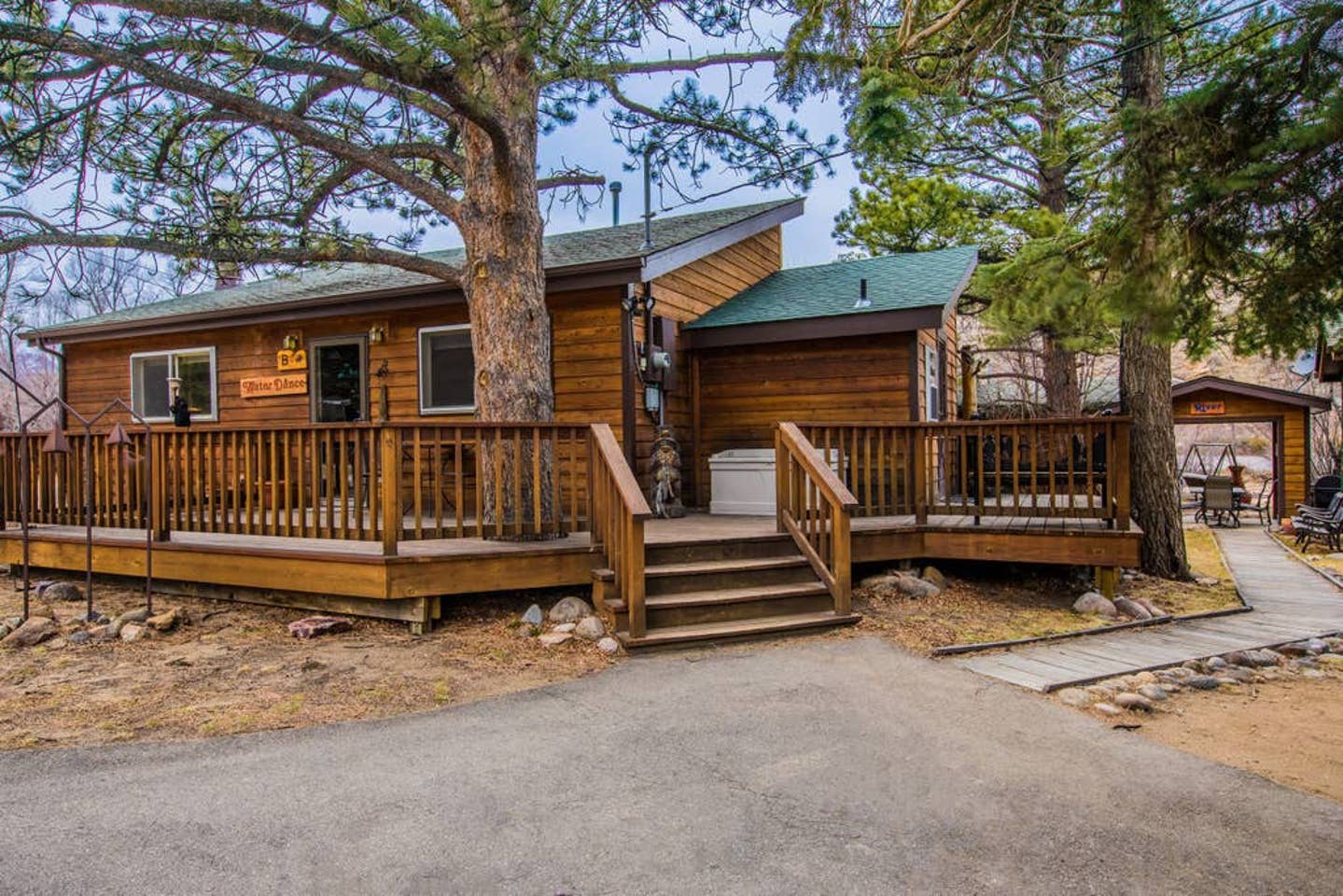 You have access to a hot tub that is behind the home, a stone’s throw from the Big Thompson River. This runs year round and is not for anyone but your group. Please, no parties or loud noises in the hot tub.